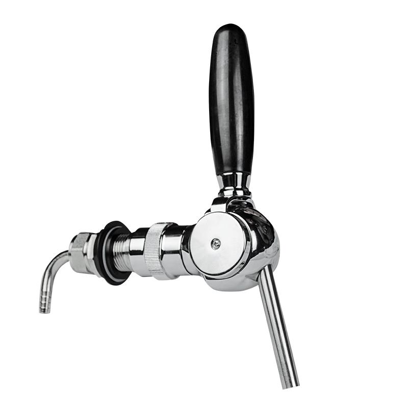 A torneira belga possui o controlador de vazão no corpo, sendo ajustada somente através de uma chave tipo Allen, em sua lateral. Tal ajuste é inerente ao tipo de chopp servido, sempre antes da abertura da torneira. Assim, ao servir, o operador não tem a facilidade de controlar a vazão manualmente. A torneira Belga possui uma bica longa e reta, bem como uma alavanca de simples função (sem mola) com apenas o movimento para baixo liberando a saída de chopp já emulsionado com gás, formando o colarinho automaticamente no copo.